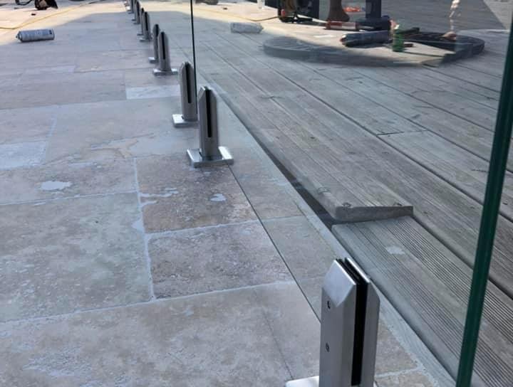 Différents types de pose : Garde-corps monté avec des poteaux, pinces, pince au sol, point d’encrage ou même intégration du rail dans le sol.
