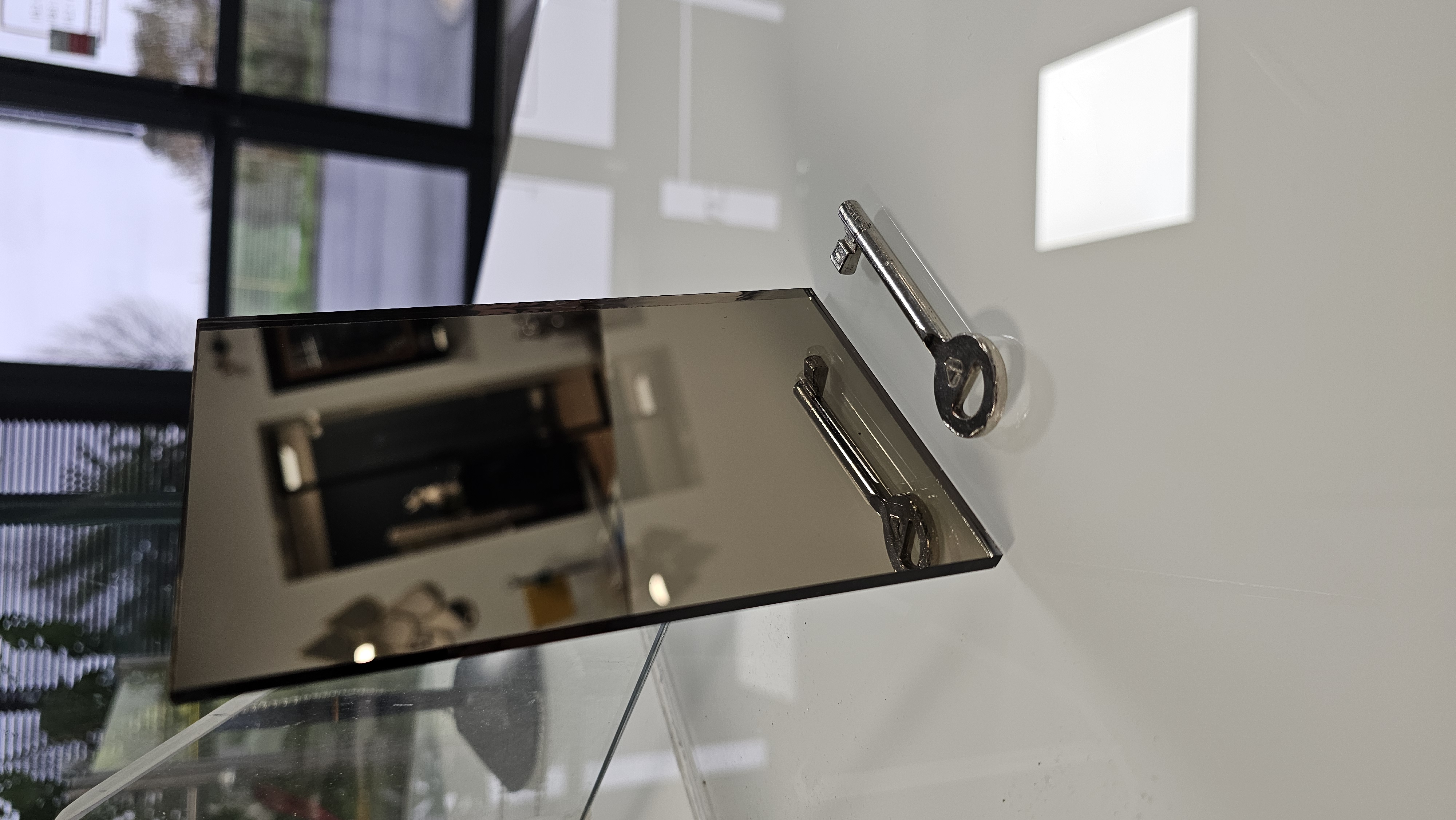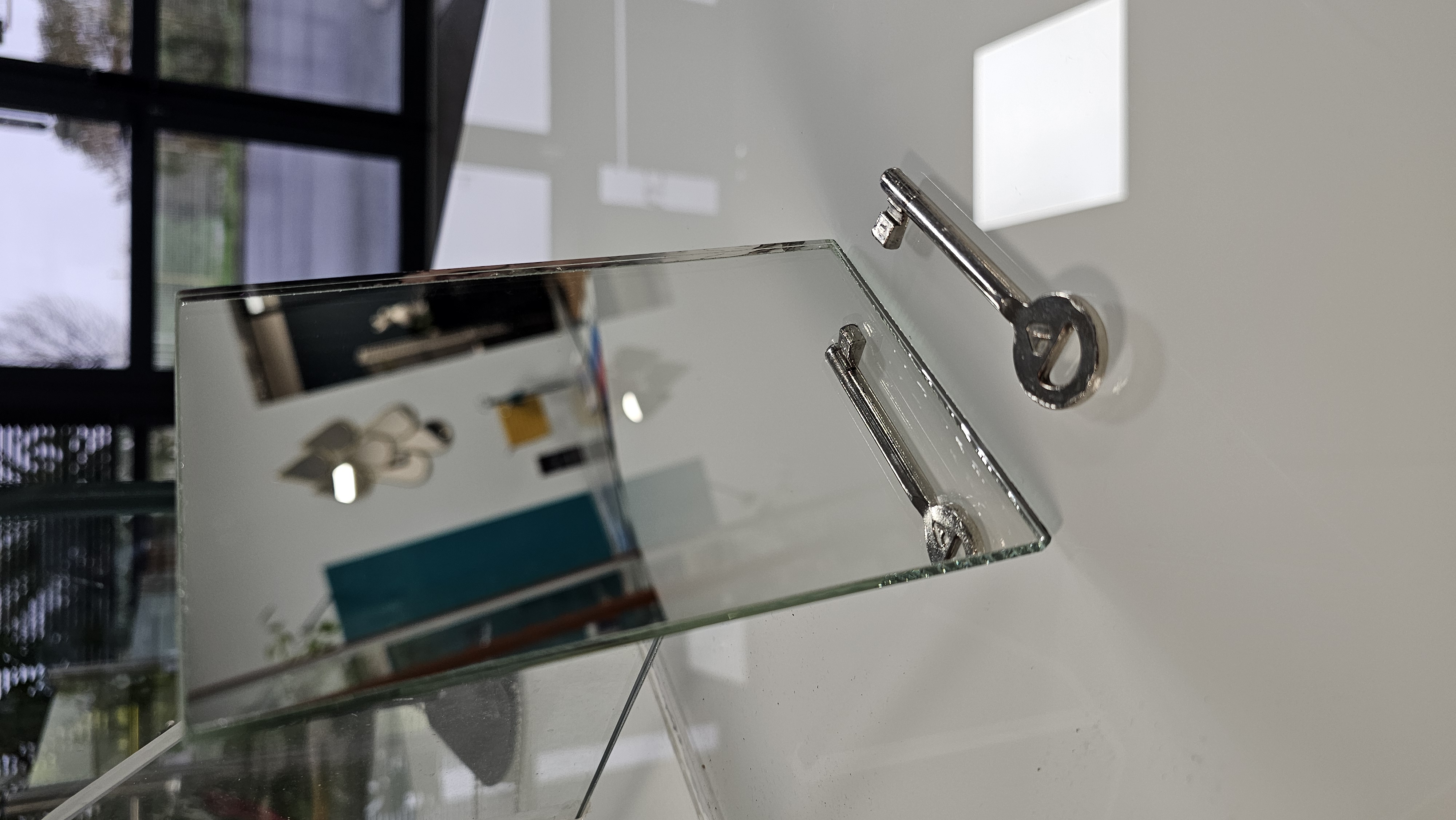 Le miroir se colle avec un silicone spécial ou alors avec des fixations pour accrocher au mur.