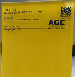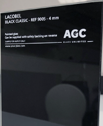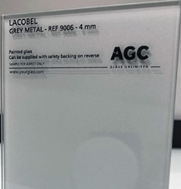 Il s’agit d’un verre clair sur lequel une couche de laque colorée est appliquée sur la face arrière, créant ainsi un effet brillant et opaque.